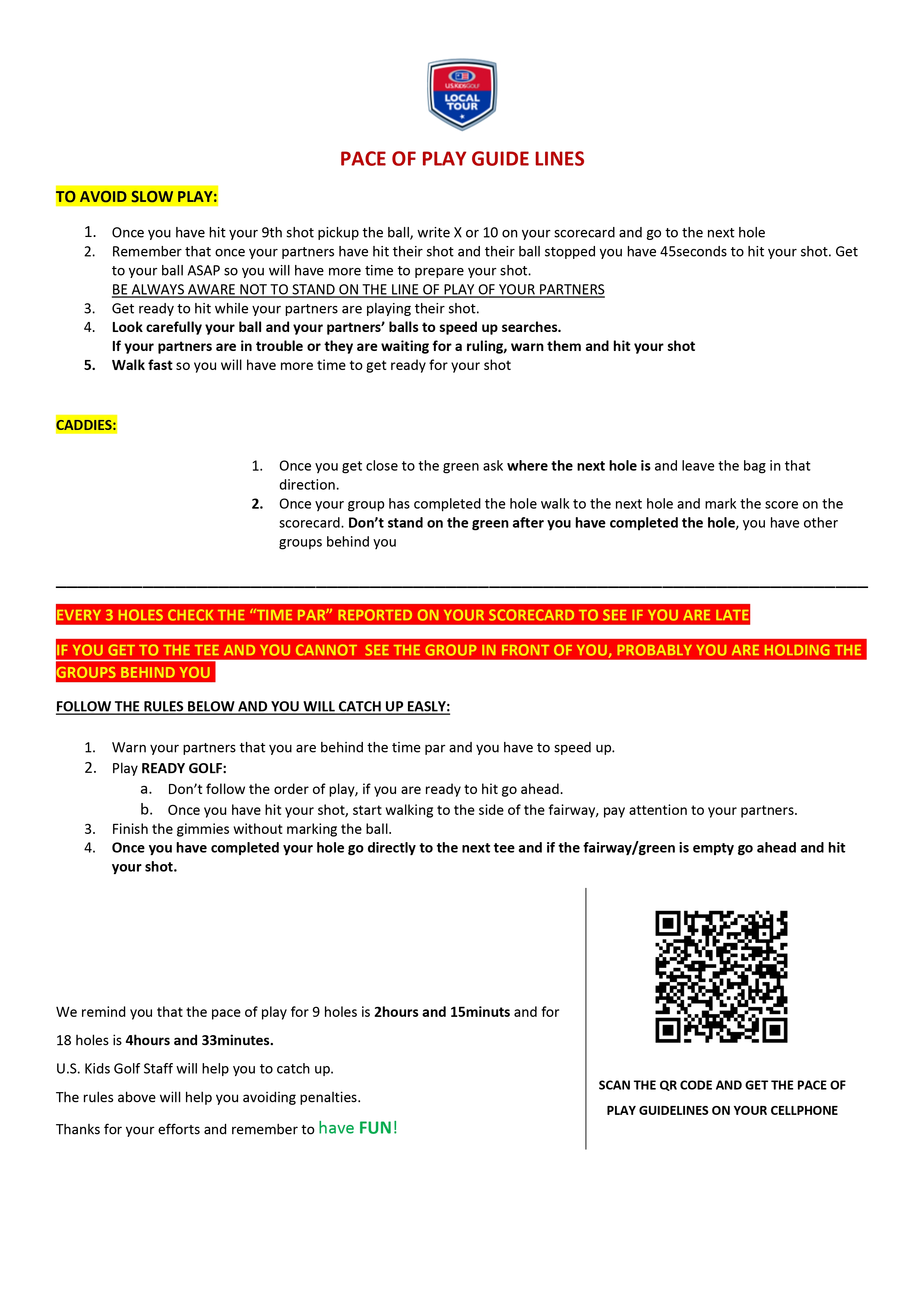 Pace of play guidelines