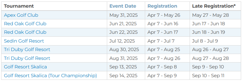 Každý turnaj má prihlasovací deadline: